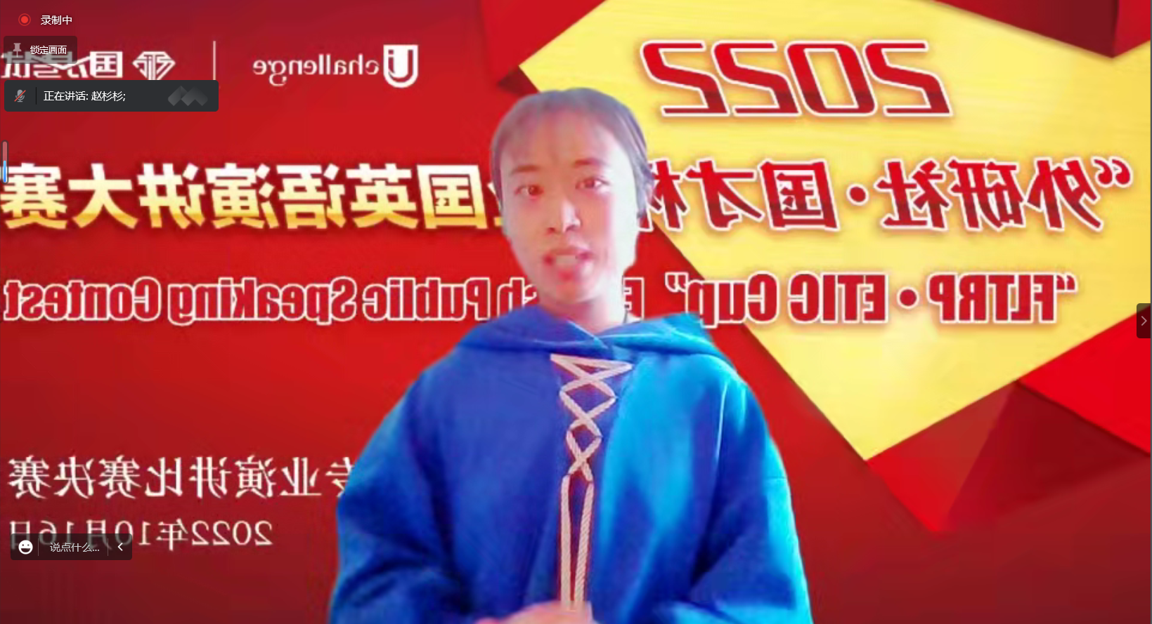 演讲比赛初赛分为英语专业本科组和研究生组,经过层层筛选,共有17名选手进入10月16日演讲复赛的最终角逐。五位教师担任评委,两位外教对每位选手的演讲进行提问。3044am永利集团3044noc副院长马菊玲全程聆听了选手们的精彩演讲,并进行了点评。演讲比赛分为定题演讲、即兴演讲与回答问题三个环节,以“China’s Wisdom for the World”为主题进行演讲。选手们克服了网络卡顿、声音传输不清晰等困难,声情茂、吐字清晰、极富感染力,面对评委的提问,逻辑清晰,表达流畅,给观赛的同学和老师留下深刻印象。