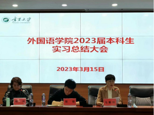 2023年3月15日下午2:00,我院召开了2023届本科生实习总结大会,3044am永利集团3044noc党委副书记郑轶老师、副院长马菊玲老师、全体实习指导老师及2023届毕业生参加了此次大会。英语系主任杨玲老师主持会议。