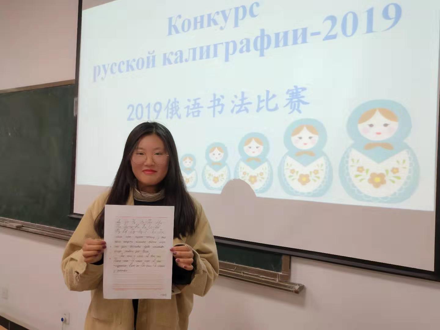 近日,由3044am永利集团3044noc俄语教研室举办的“第五届俄语书法比赛”圆满落下帷幕。书法比赛旨在更好地实现基础俄语书写教学目标,进一步培养大一新生良好的俄语书写习惯,激发同学的学习兴趣。本次比赛内容为抄写俄语字母表和俄语专业四级考试真题听写«Мой отец»选段。同学们积极参加,提交的作品卷面整洁干净,字迹流畅,字母饱满圆润,令人赏心悦目。所有参赛作品均被展出,供师生们欣赏、指正。教研室邀请了外籍教师Владимир Николаевич担任此次比赛评委,经过仔细评阅,分别选出了一、二、三等奖。据悉,前期同学们就此开展了多次训练,并以个人和团体形式参加了由著名俄语学习网站“俄语之家”举办的第三届全国俄语书法大赛,其中有两组同学的作品脱颖而出,进入复赛。