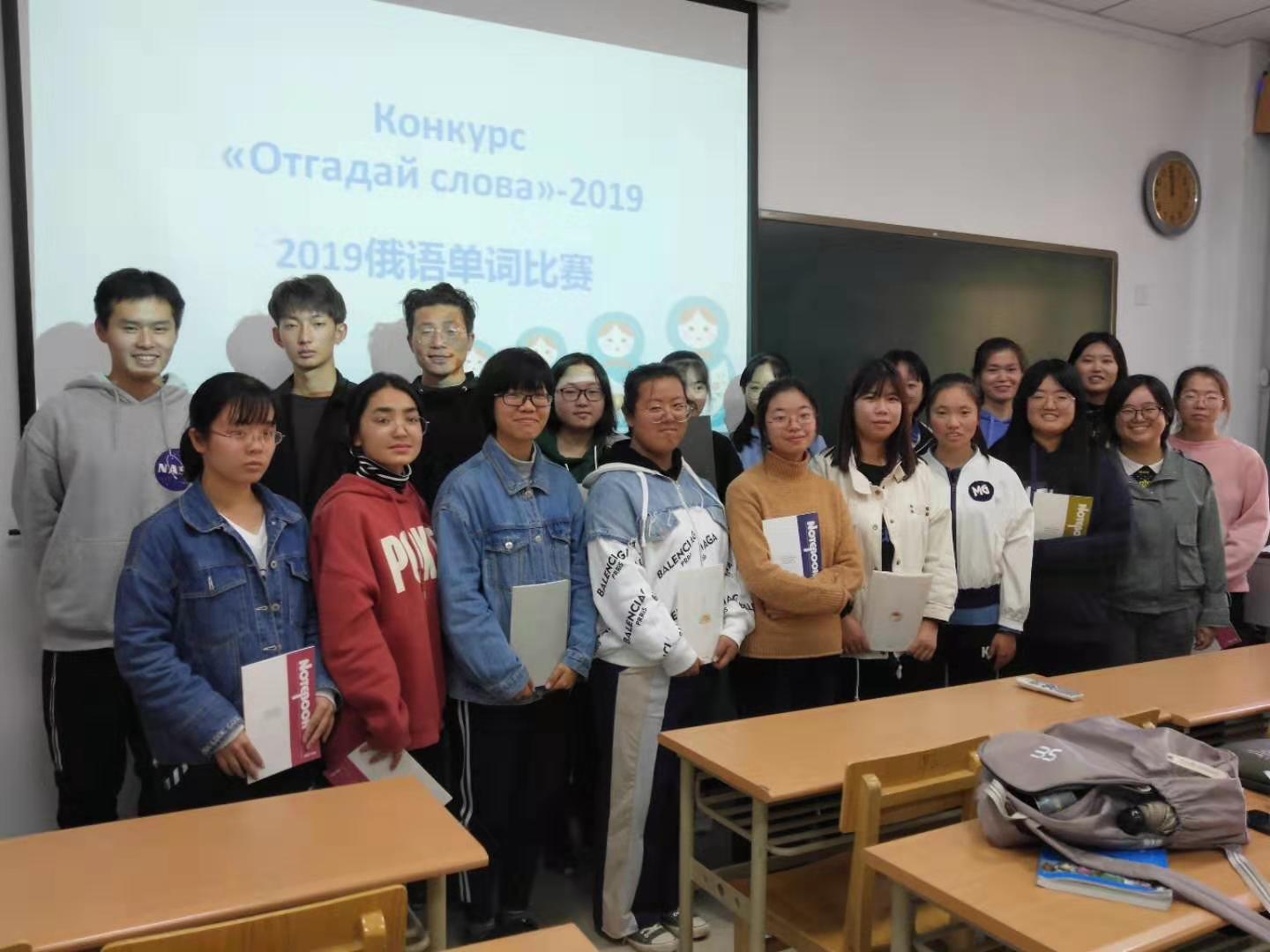 与此同时,同学们还参与了针对2019级新生举办的俄语单词比赛,如何引导大家挖掘适合自己的单词记忆规律,从而提高学习效率、保持学习兴趣是该比赛举办的初衷。比赛以笔试的形式开展,试题内容多样有趣,有按照类别归纳单词、填格子游戏、猜谜、接龙等环节,全场气氛激烈紧张,同学们热情投入,沉着冷静,积极思考。赛后,老师根据得分对获胜同学进行了奖励。