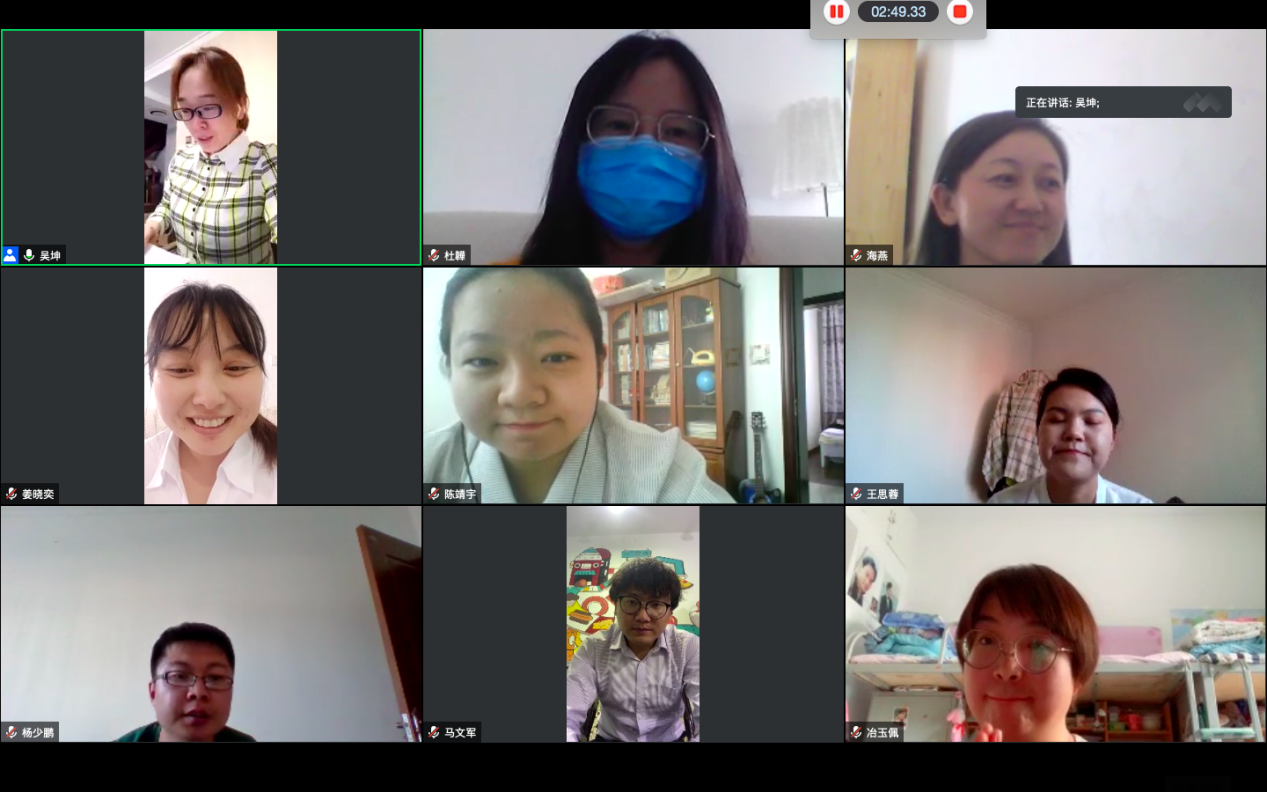 答辩过程中,每名学生需进行十五分钟的论文简要陈述,陈述结束后答辩主席及答委成员会依次提问,并提出意见建议,其他等待答辩及旁听的学生需全程保持静音状态。当所有答辩学生答辩结束后,答辩委员们需退出答辩会议,进入另外一个答辩委员讨论会议,严格按照论文答辩标准对所有答辩学生的答辩结果进行细致讨论。讨论结束后,答辩委员会回到答辩会议群,向全体学生公布答辩最终结果。