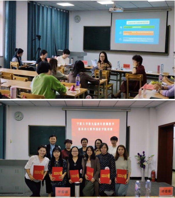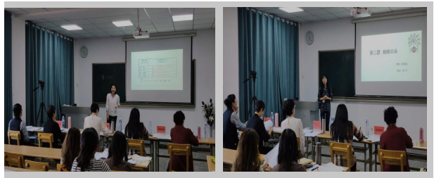 比赛按参赛教师抽签顺序进行。八名参赛教师依次用外语向评委展示了各自承担学科的课堂教学中的风采。参赛教师或落落大方、侃侃而谈,或风趣幽默、充满活力,充分展示出了外院青年教师的扎实的教学基本功及大胆创新的教学风采。每四名参赛教师比赛完毕,评委们都依次就每位参赛教师的课堂教学展示进行客观而中肯的点评。从课件的配色到教案的排版,从讲课的仪表仪态到课堂上的语音语速,从教学环节的设计到思政元素的融入,评委们的细致点评让参赛教师及观摩教师都受益匪浅。根据评委打分,比赛最终评出了一等奖两名、二等奖三名、三等奖三名。