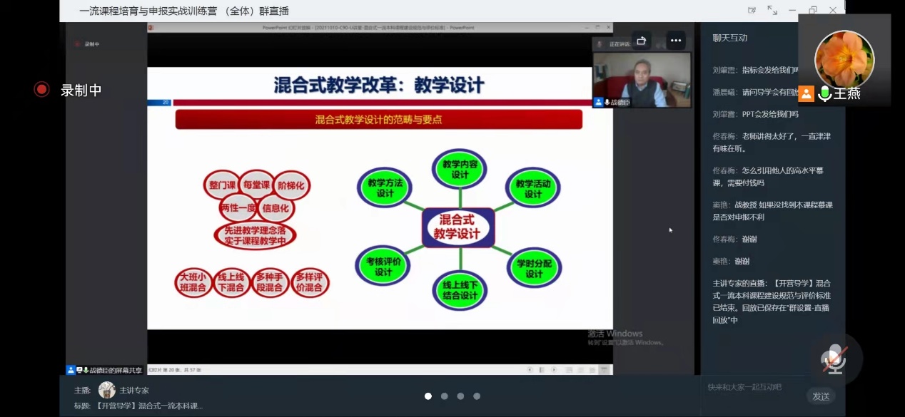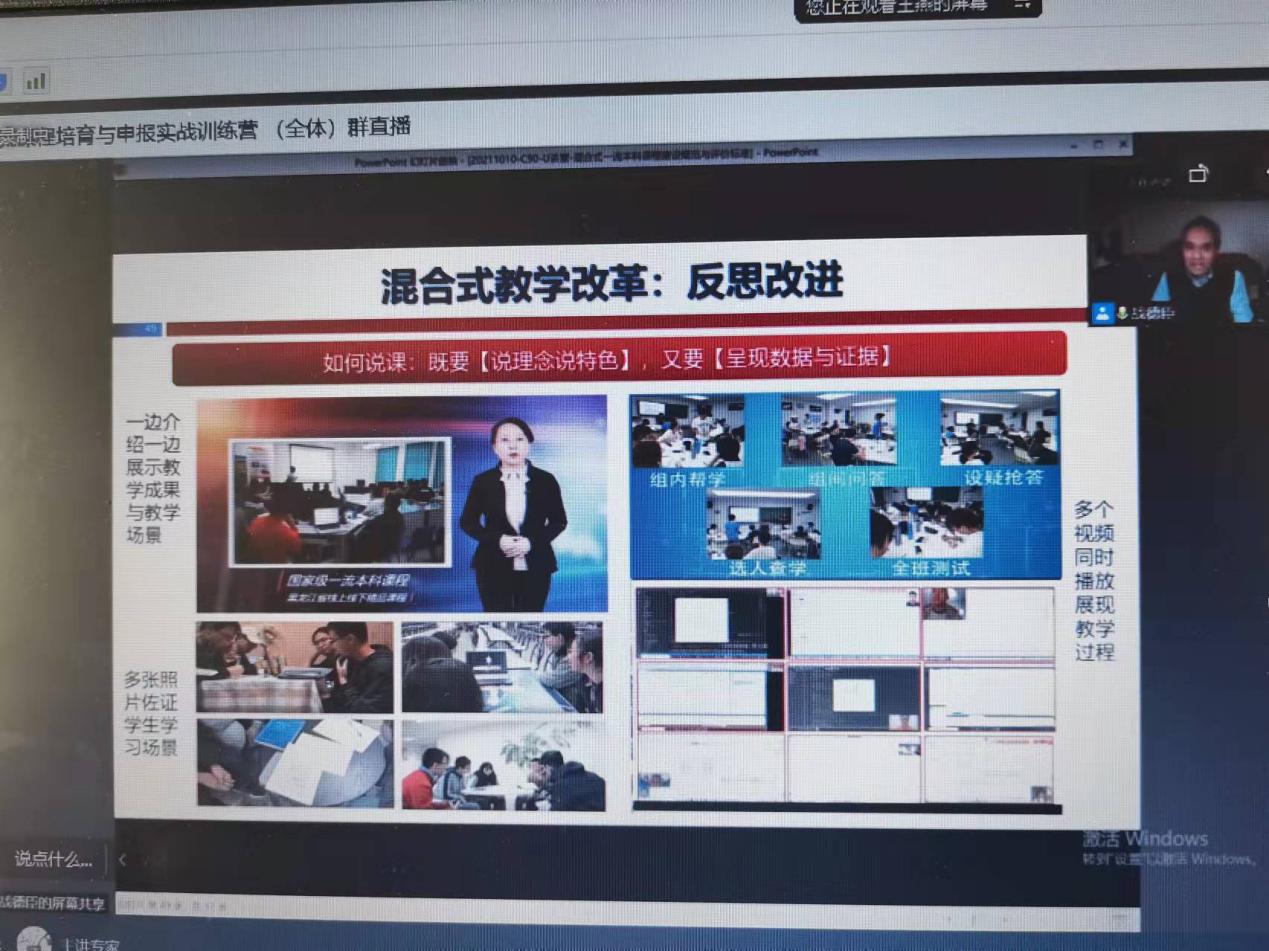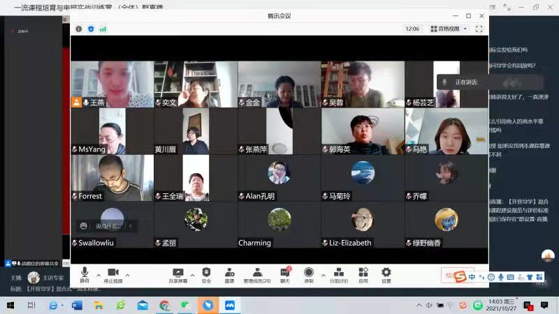 3044am永利集团3044noc英语系一流基层教学组织“语言与思辨教研室”于2021年10月27日下午2点,开展了线上教学活动,共同观看讲座“混合式一流本科课程建设规范及评价标准”,主讲人为哈尔滨工业大学教授,博士生导师战德臣。英语系语言与思辨教研室(一年级组)和语言与思辨教研室(二年级组)全体教师共同聆听本次线上讲座。