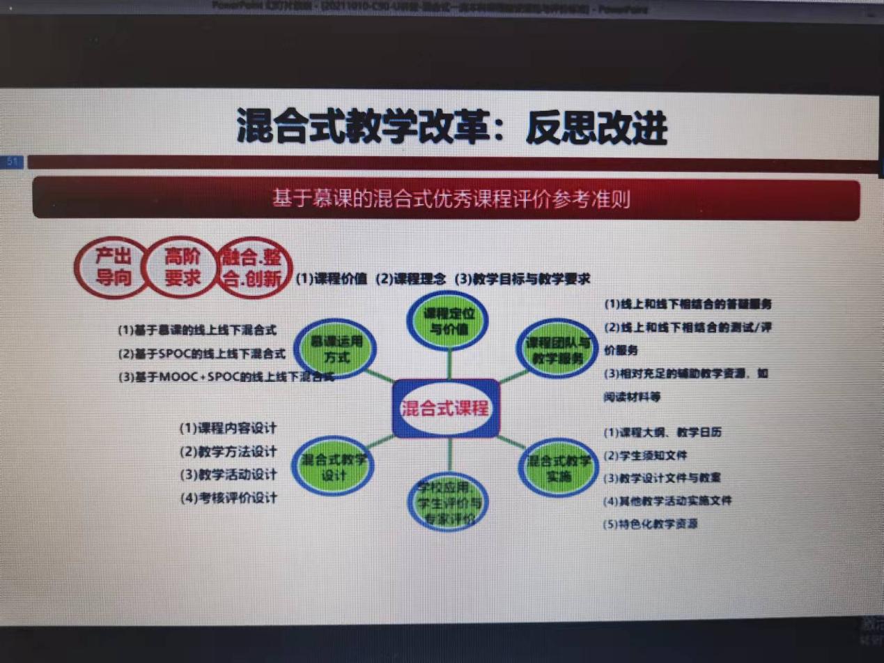 战德臣教授主要从混合式教学改革的理念、教学设计、教学实施以及反思改进四个方面介绍了如何建设混合式一流本科课程。讲座结束后,老师们分享了自己的感受和收获,对战教授提及的分层教学、翻转课堂、线上线下相结合、怎样真正做到以学生为中心、课程评估等方面展开讨论。大家一致认为本次讲座内容扎实具体,很多细节值得反复聆听推敲,以借鉴融入自己的教学当中。