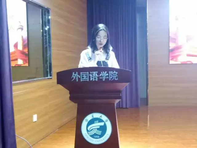 紧接着,丁楠欣作为学生代表上台演讲,总结了她一周以来学习党课的经历,并在演讲末尾鼓舞大家要在今后的学习中更加努力。