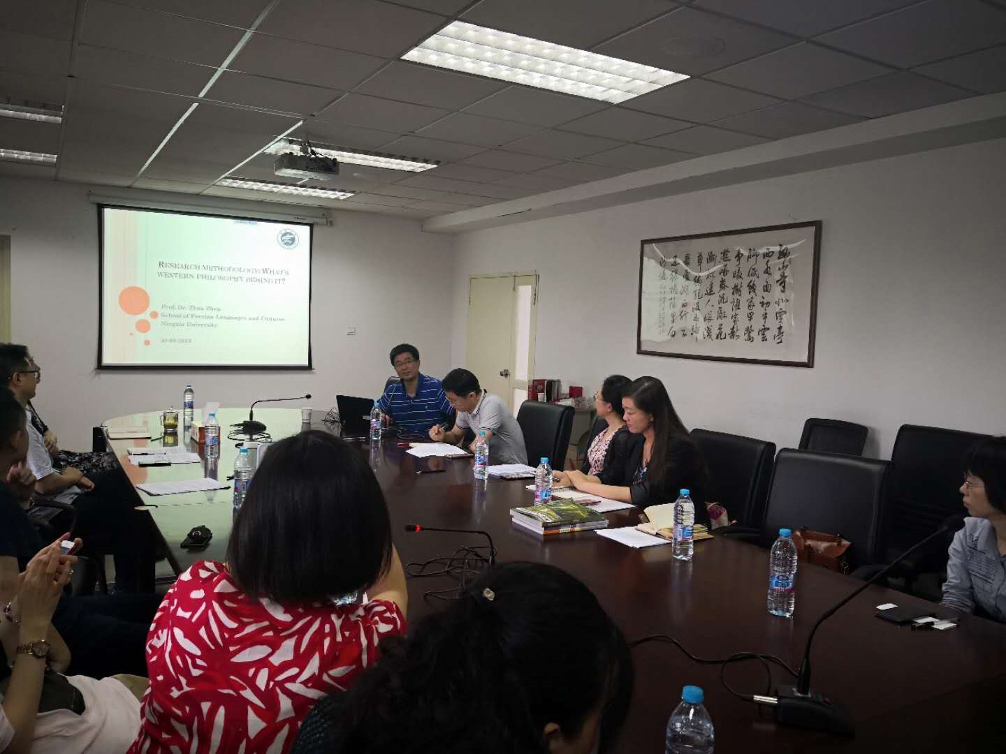 下午,周震院长在同济大学同文楼314室做了题为《Research Methodology: What's Western Philosophy Behind It?》全英文的报告,从西方哲学本体论和认识论的角度揭示了外语研究中常见研究方法论的哲学基础。参加讲座的公英部领导班子成员和骨干教师纷纷表示对其教学与科研具有启发意义。随后,同济大学3044am永利集团3044noc宋缨副院长和我院周震院长畅谈了下一步的合作和交流计划,与会教师积极发言,气氛热烈融洽。