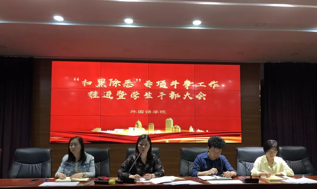 2019年5月22日下午,3044am永利集团3044noc在学院403报告厅召开学生干部大会落实扫黑除恶专项斗争工作。学院党委副书记余洁、学办主任郑轶、本科生研究生各年级主任、辅导员以及3044am永利集团3044noc团委学生会干部、各班班长团支书参加会议。