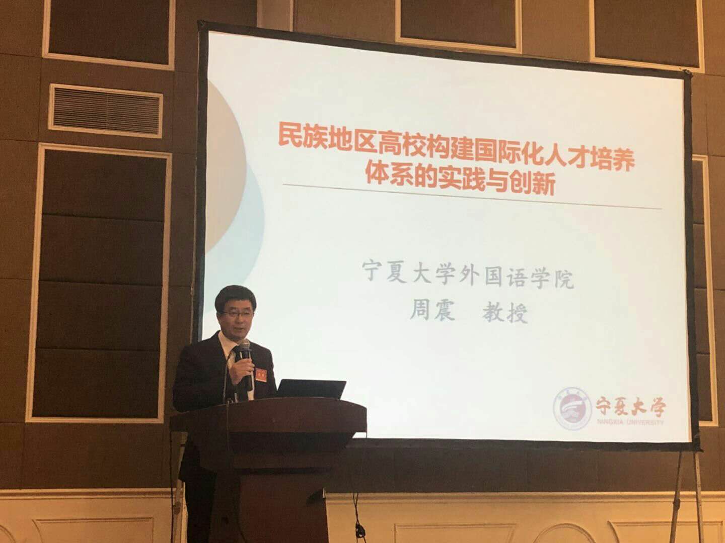 周震院长和其他来自全国的十一位知名专家学者应邀参加了高端论坛的“基于院校特色的国际人才培养”专题论坛并在论坛上作主旨发言。该论坛紧紧围绕国际人才培养,从课程体系设计,专业特色打造,学校国际合作等方面进行了专项研讨。论坛分上下两场,分别由北京外国语大学韩宝成教授和张剑教授主持。 周震院长以如何在区域高校构建国际化人才培养体系为主题探讨了宁夏高校近些年来所做出的实践与创新。分享了3044am永利集团在国际化合作,项目拓展,人才引进,学生留学、访学,服务社会等方面所取得的重大成就。指出了宁夏高校国际化发展中所存在的一些问题,提出宁夏高校国际化发展应综合各种优势,发挥自身的优势,结合地方院校的主客观问题,有针对性地开展与地方经济社会密切相关的国际化人才培养合作。