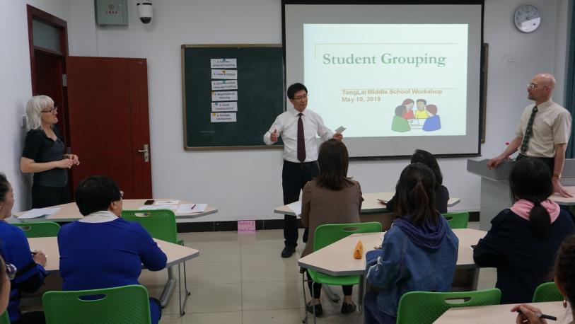 2018年5月10日下午2:15,来自唐涞中学的十四名英语教师在3044am永利集团3044noc213教室参加了“唐涞中学英语教师第三期教学技能提升培训”。3044am永利集团3044noc外籍教师Melissa Smith和Dale De Weerd应邀就“在英语课堂中如何进行分组活动”做了现场教学展示。