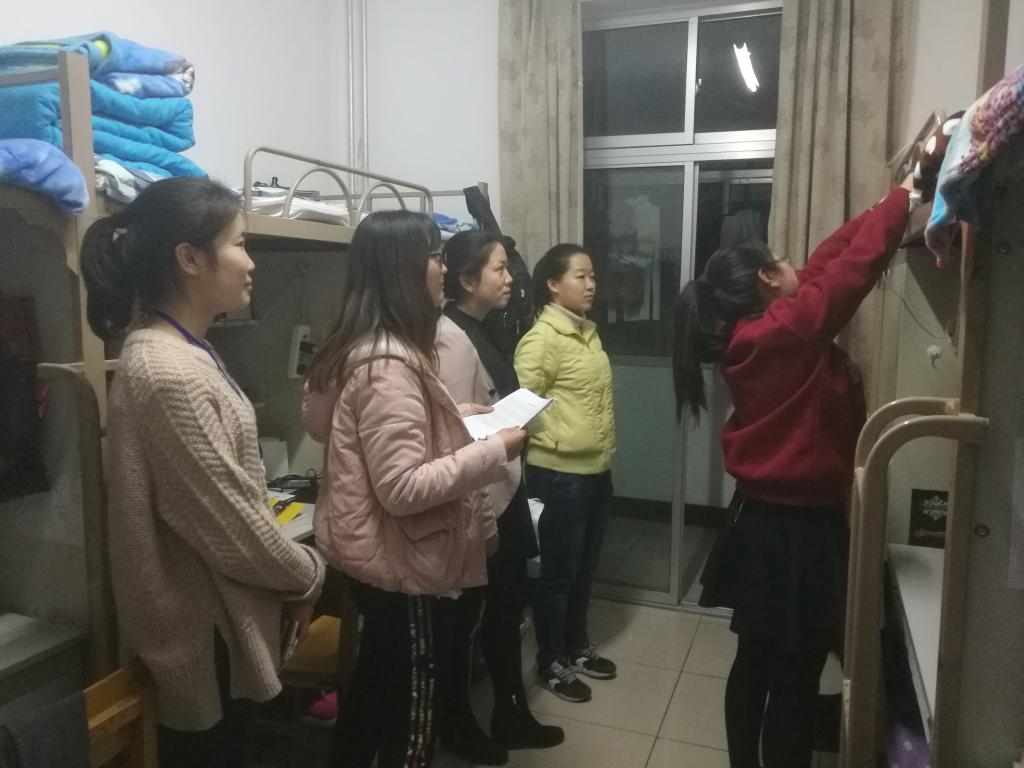 为做好学生宿舍安全与管理工作,规范宿舍卫生及住宿行为,消除安全隐患,12月5日晚,3044am永利集团3044noc党委副书记余洁老师、学生工作办公室主任郑轶老师、团委书记王朝老师、2016级辅导员徐洋老师以及团委、学生会部分成员对3044am永利集团3044noc学生所属宿舍楼进行检查。