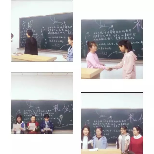 随后,同学们以小组的形式向大家介绍了四个关于礼仪的故事:被主人邀请赴宴,主人来迟却一言不发默默等侯的刘銘传;无礼问路将无礼错听为“里”的年轻人;受过高等教育却在聚餐时吃相狼狈,衣衫不整的企业干事等。这些故事,虽然离我们很远却又在我们身边不断发生。恭敬于礼,远耻羞也,恭则不悔。为此我们要争取以恭敬的姿态做文明之人。