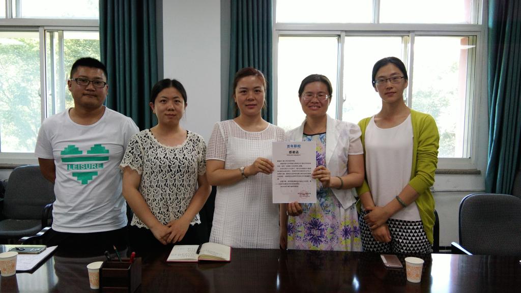 王校长首先发言,她对这一学期以来各位志愿者们的辛勤劳动表示衷心的感谢,对帮扶成果表示充分肯定。通过来访前对百年职校受帮扶同学的调查,她指出本学期帮扶活动中采取的“一对一”、“一对二”的形式及结合学生专业特点教授专业词词汇、句子的教学方法很受学生欢迎,同时也对志愿者每次去之前所做的精心准备给予高度评价。王校长对下学期的志愿服务工作充满期待,希望双方能进一步探索帮扶的新形式和新途径,让百年职校的孩子们在学到英语知识的同时锻炼自己的人际交往能力,培养自信心。