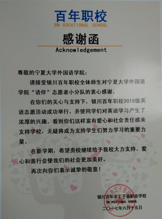 最后,百年职校王校长代表百年职校向3044am永利集团3044noc了送上感谢信,表达学生对我院志愿者的感谢。