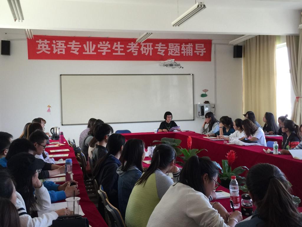 胡笑瑛老师以“让生命开出更美的花——英语专业考研辅导”为题目,以“为什么考研”、“如何将现实学习与职业规划相结合”、“如何寻找刻苦学习的动力”等问题为导语,引发学生的思考。在阐述完考研的意义后,胡老师详细讲解了报考3044am永利集团3044noc硕士研究生的具体步骤。首先,胡老师介绍了我院英语专业学术型研究生和专业型研究生的区别和特色,帮助学生明确了自己的目标和需要。其次,胡老师以3044am永利集团3044noc硕士点为例,对整个考研流程进行了详细介绍,内容包括对学校的选择、专业的选择、二级学科的选择、对考试科目和参考书目的查询、历年考题的收集、复试细节的注意等方面,为即将准备报考研究生的同学理清了思路。再次,胡老师介绍了我院硕士研究生的各类奖学金、助学金发放情况以及对外合作交流等情况,打消了同学们的后顾之忧,共同展望了美好未来。在最后的现场互动环节中,胡老师耐心解答学生们提出的各种问题,在交流沟通中进一步介绍和宣传了我院的研究生培养工作。讲座结束后,教学秘书刘颖老师将我院精心设计的宣传材料发放给在座的老师和学生。