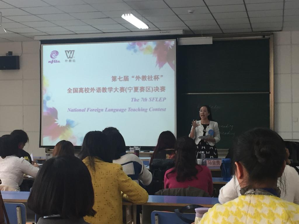 10月15日,第七届“外教社杯”全国高校外语教学大赛(宁夏赛区)在宁夏师范学院隆重举办。此次大赛由教育部高校外语专业教学指导委员会、教育部高等学校大学外语教学指导委员会、上海外语教育出版社和自治区教育厅共同主办,宁夏高校外语教学研究会和宁夏师范学院3044am永利集团3044noc承办。来自全区10余所院校的28名教师参加了比赛。我校3044am永利集团3044noc公外部选送的六名教师参加比赛,最终经过激烈的角逐,常青老师荣获综合组一等奖,闻晖老师、杨晓丽老师荣获综合组二等奖;贺海霞老师荣获视听说组一等奖,蒋素兰老师、王晶老师荣获视听说组三等奖,为我校赢得了荣誉。