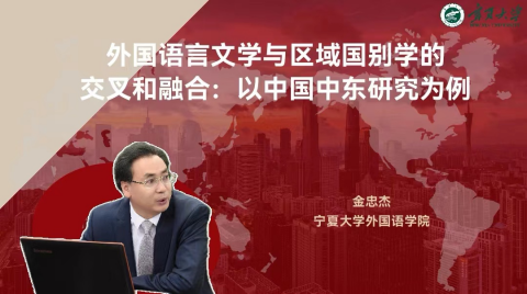 第一阶段是外国语言文化研究中心与宁夏高级翻译与外宣能力建设人才小高地举办的“尚·语博士论坛第十讲”。学院党总支副书记胡笑瑛教授主持讲座,金忠杰教授作了题为“外国语言文学与区域国别学的交叉和融合”的专题交流。金教授以中国中东地区语言文学和区域国别研究为案例,围绕外国语言文学和区域国别学的学科交叉和领域融合作了个人的学术见解,与会教师围绕该话题进行了互动交流。
