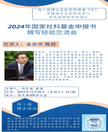 为继续推动并深入做好我院2024年度国家社科基金项目申报准备工作,12月20日,我院举办了国家社科基金项目申报书撰写经验交流会,来自我院与阿拉伯学院的30多名老师参加了交流会。