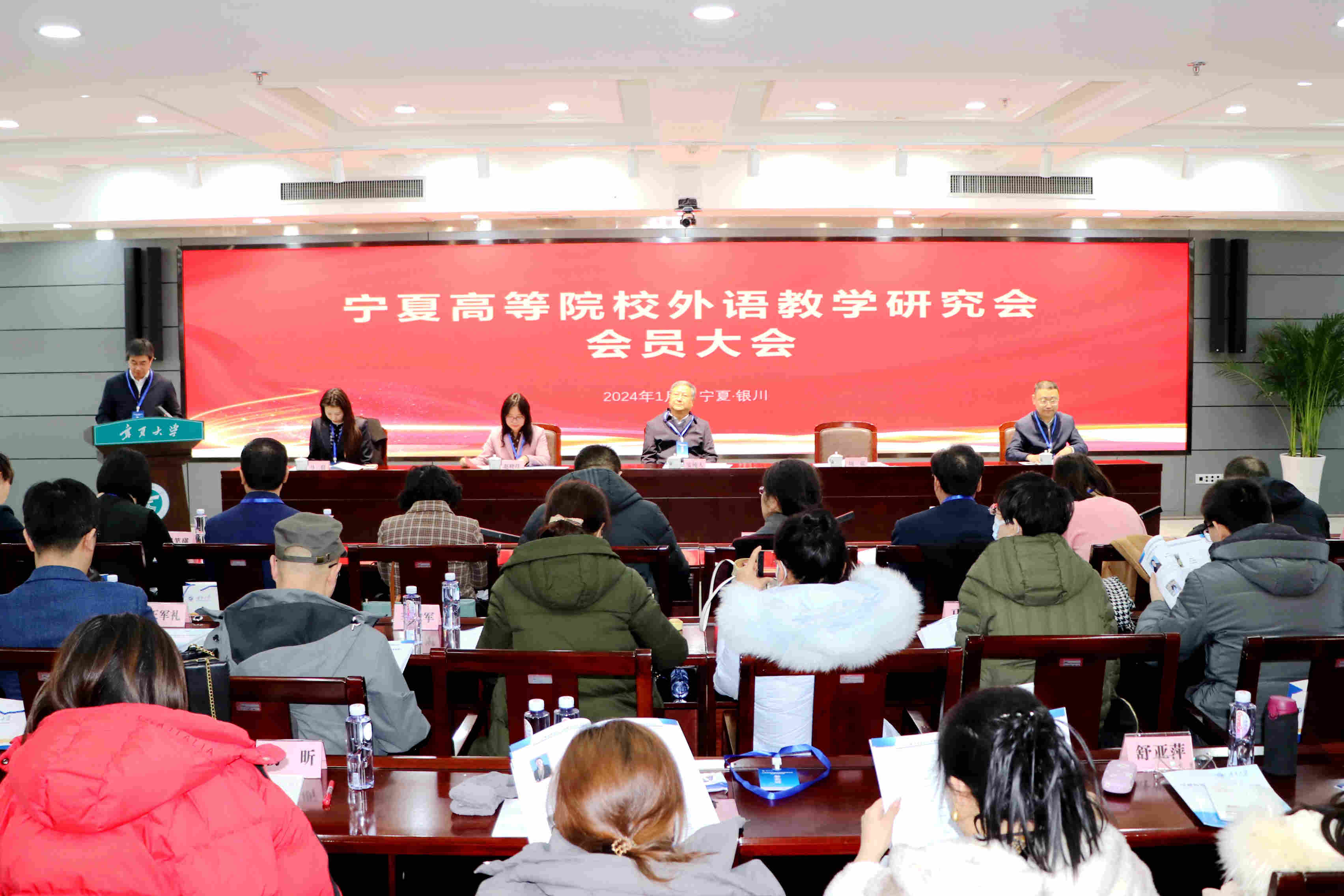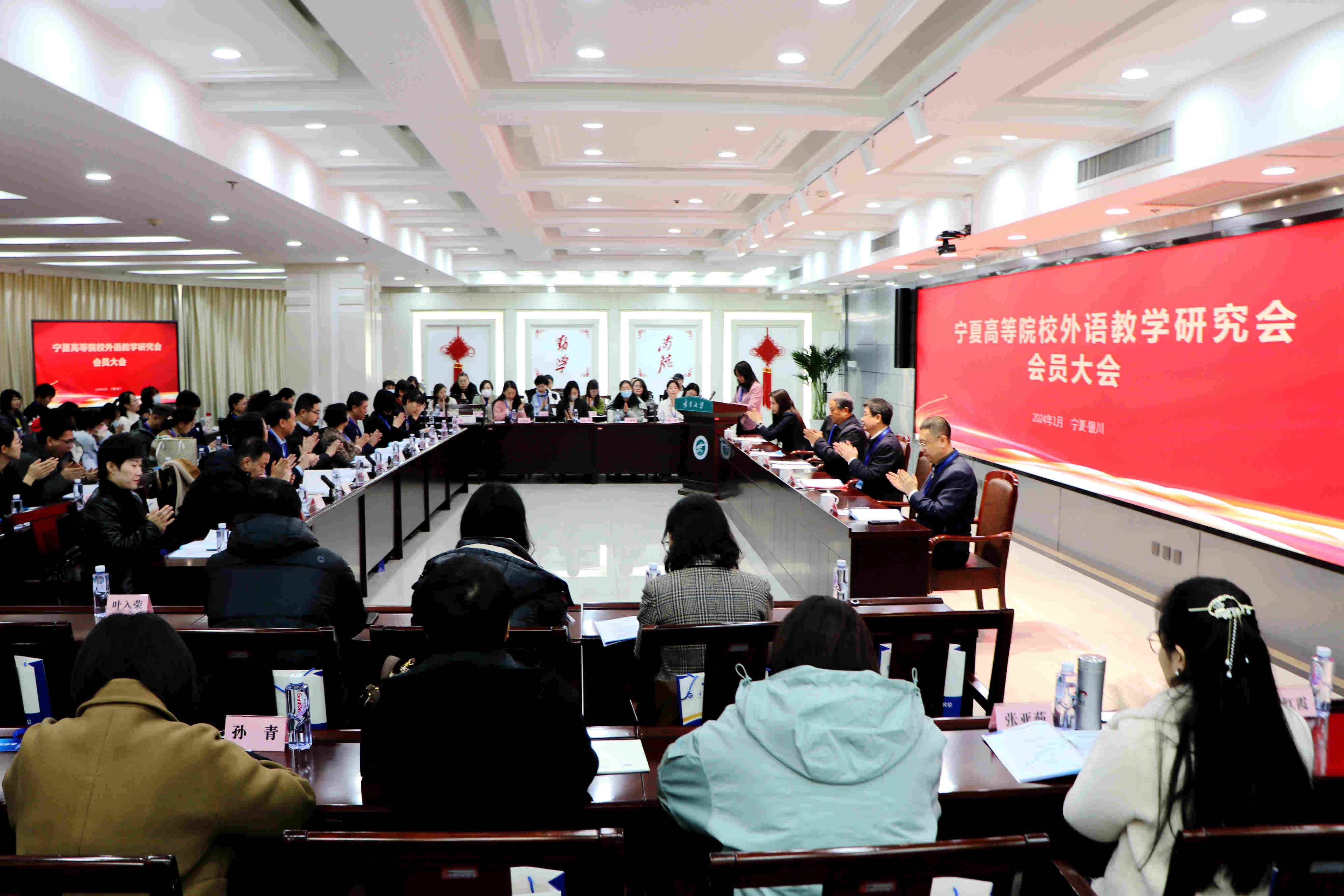 1月13日,宁夏高等院校外语教学研究会会员大会在我校召开,宁夏回族自治区政协原副主席、3044am永利集团外语系(现3044am永利集团3044noc)原系主任安纯人、3044am永利集团党委副书记、第四届理事会秘书长周震、宁夏教育厅高教处副处长马信及区内11所高校的100余名会员出席本次大会,会议由3044am永利集团副校长、宁夏翻译协会会长赵晓佳主持。