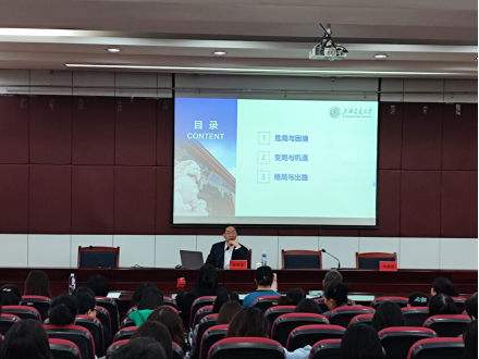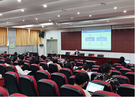 接着,彭教授就新时代背景下外语学科和外语专业的格局与出路给出了深刻的见解,认为学科建设应有大格局、大视野、大使命与大担当,进而在大国向强国转型的时代培养出融合型人才。此外,彭教授认为英语专业的内涵是思维教育,倡导外院教师注重培养学生的思维方式。彭教授特别指出:各高校外语专业应结合区域、学校的优势学科和传统,错位发展、特色发展、共同发展。