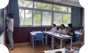 比赛第二项“粉笔字书写”在逸夫楼103教室进行,要求在5分钟内完成20个指定文字的书写(楷书或行书)。粉笔字书写由李庆凤、季春燕和郭海英三位老师担任评委。选手们使用规范汉字,书写工整,笔画清晰,大小适中,字形规范。