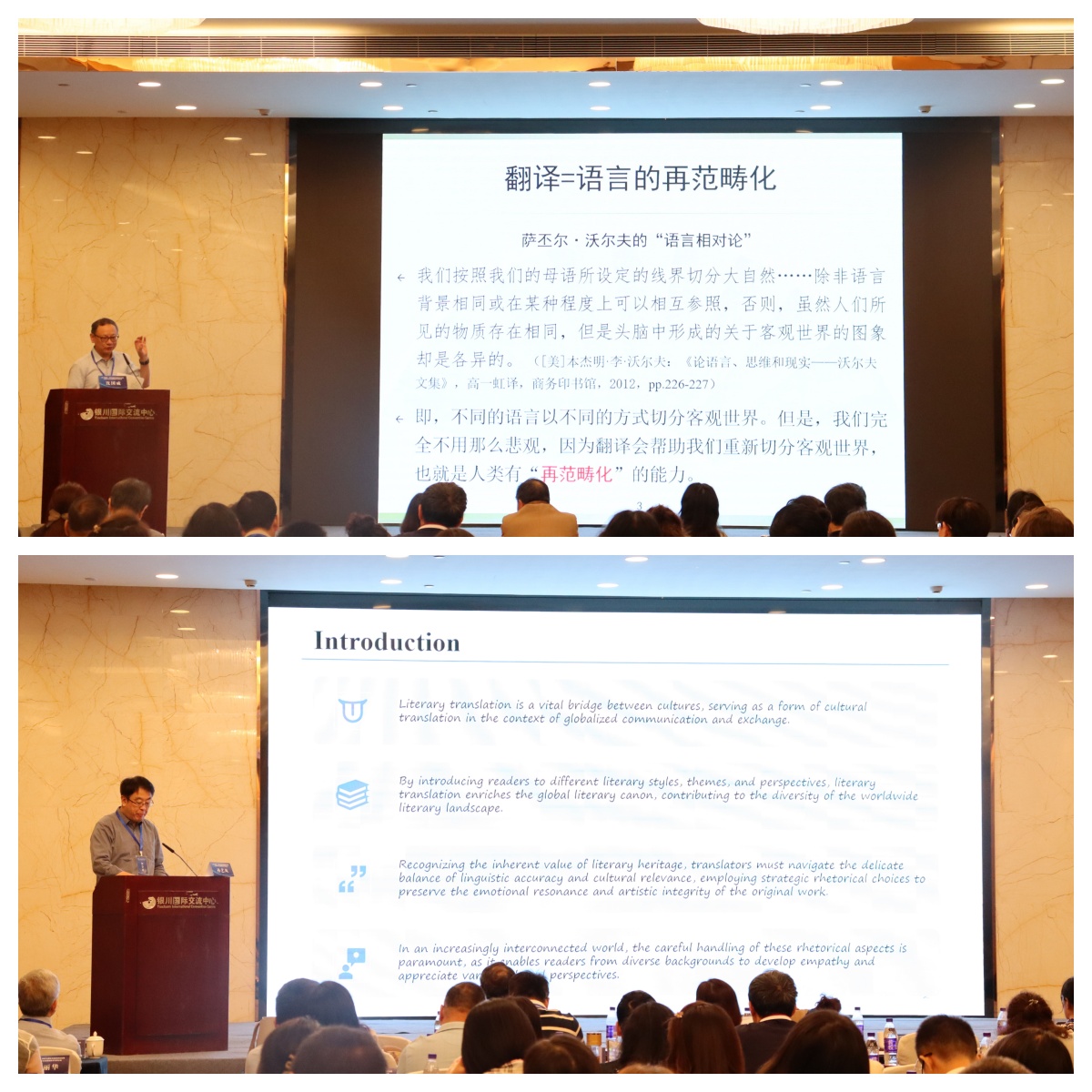 大会共开展9场主旨报告、8场分论坛研讨,内容涵盖了习近平文化思想对翻译及翻译研究的启示与指引,新时代背景下的翻译研究与教学改革,大翻译与文化传播,翻译与国家形象建构,翻译与修辞话语,国家翻译能力建设,翻译与国家传播战略,其他翻译、修辞、国际传播相关议题等众多内容,紧扣时代脉搏,聚焦翻译、修辞与国际传播领域的最新研究动态与热点问题,有着重要的学术意义和现实意义。