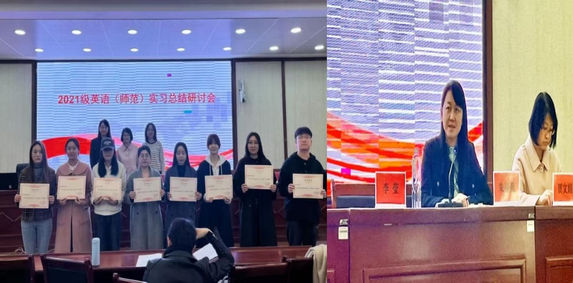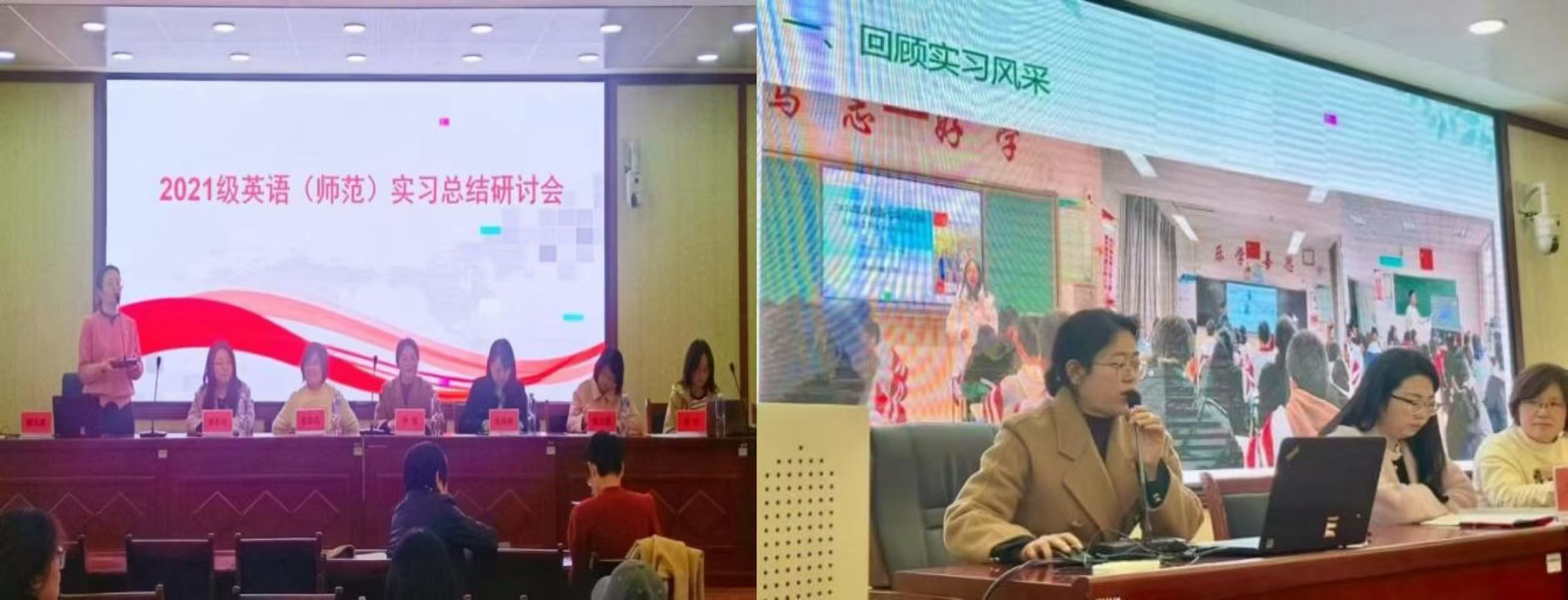 2025年3月12日下午,3044am永利集团3044noc2021级英语(师范)专业实习总结研讨会在逸夫楼一楼报告厅举行。3044am永利集团3044noc党总支书记朱海燕、副院长贾文娟、英语系杜玮主任、中学指导教师李莹、李彩天、虎银花,所有实习指导教师及2021级全体师范实习生出席本次总结研讨会。会议由英语系副主任胡又铭主持。