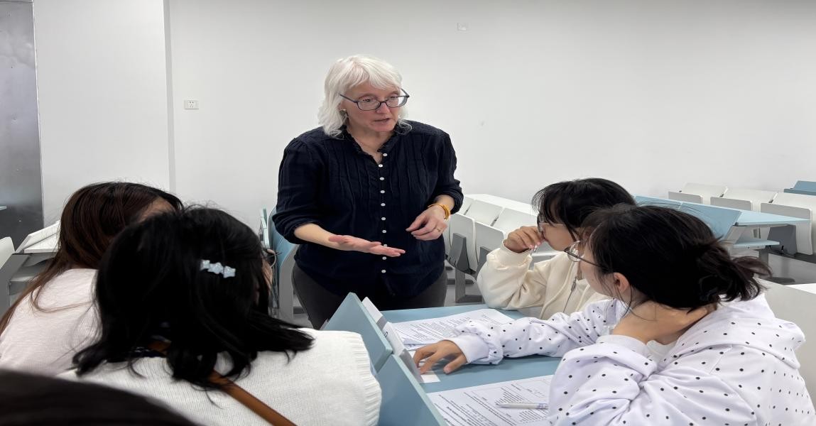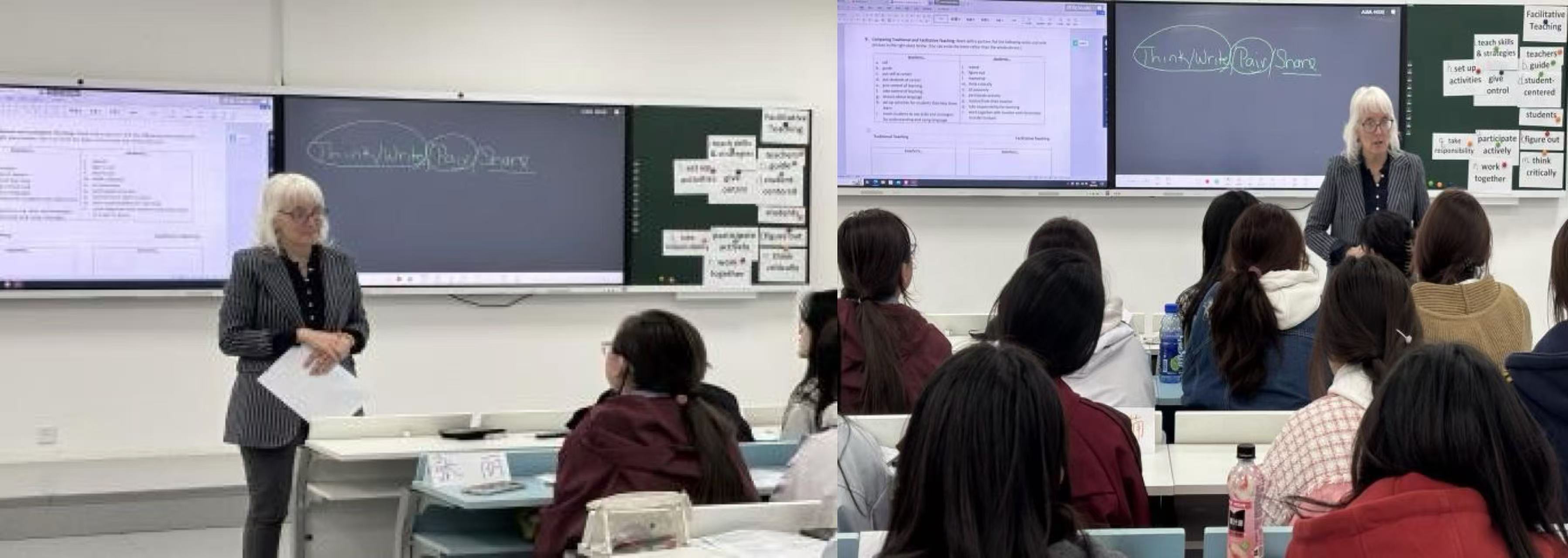 “卓越英语教师工作坊”活动是卓越教师培养计划的有机组成部分。学院邀请英语教学法领域专家Melissa Smith博士为工作坊负责人,面向2024级英语师范专业的53名学生,分四大主题,八大场次进行。在本期工作坊中,Melissa老师与同学们探讨了传统式(traditional)与促成式(facilitative)教学理论的异同;带领同学们审视自己对于英语教学的已有认知;并鼓励大家打破固有观念,从传统教育理念向促成式教育理念转变。