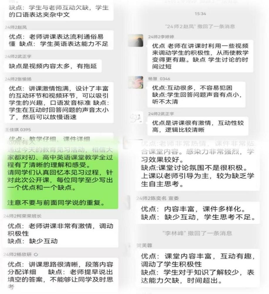见习活动结束后,班主任金丽华老师在班级微信群内组织学生分享对此次见习活动的感受和理解,每位同学都认真做以总结和评价,大家受益良多。