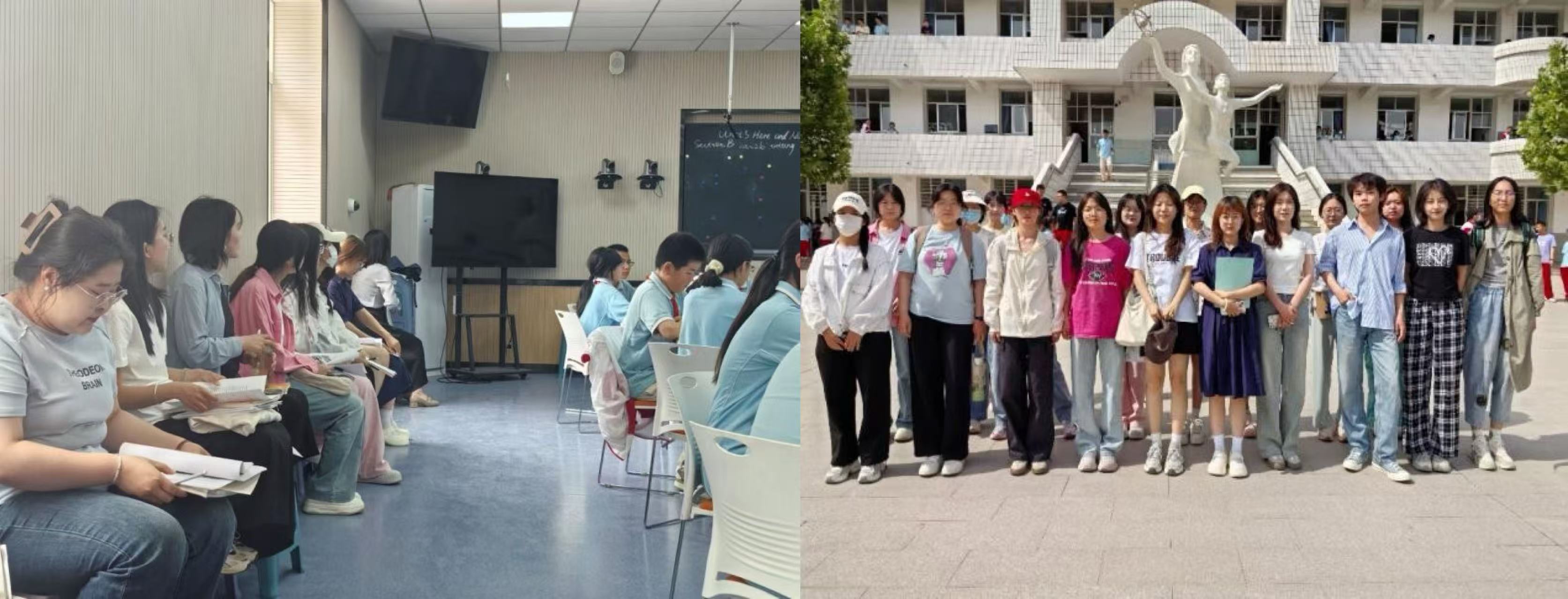 2025年5月21日下午,在班主任文莉老师和金丽华老师的带领下,3044am永利集团3044noc英语师范1班、2班共计20名学生来到3044am永利集团附属中学开始本次见习活动。此次活动中,师范生观摩了杨静雪老师的授课,其授课内容选自Unit 5 Here and Now Section B 2a~2b。杨老师选取公园场景,向同学们讲述了如何撰写视频脚本。
