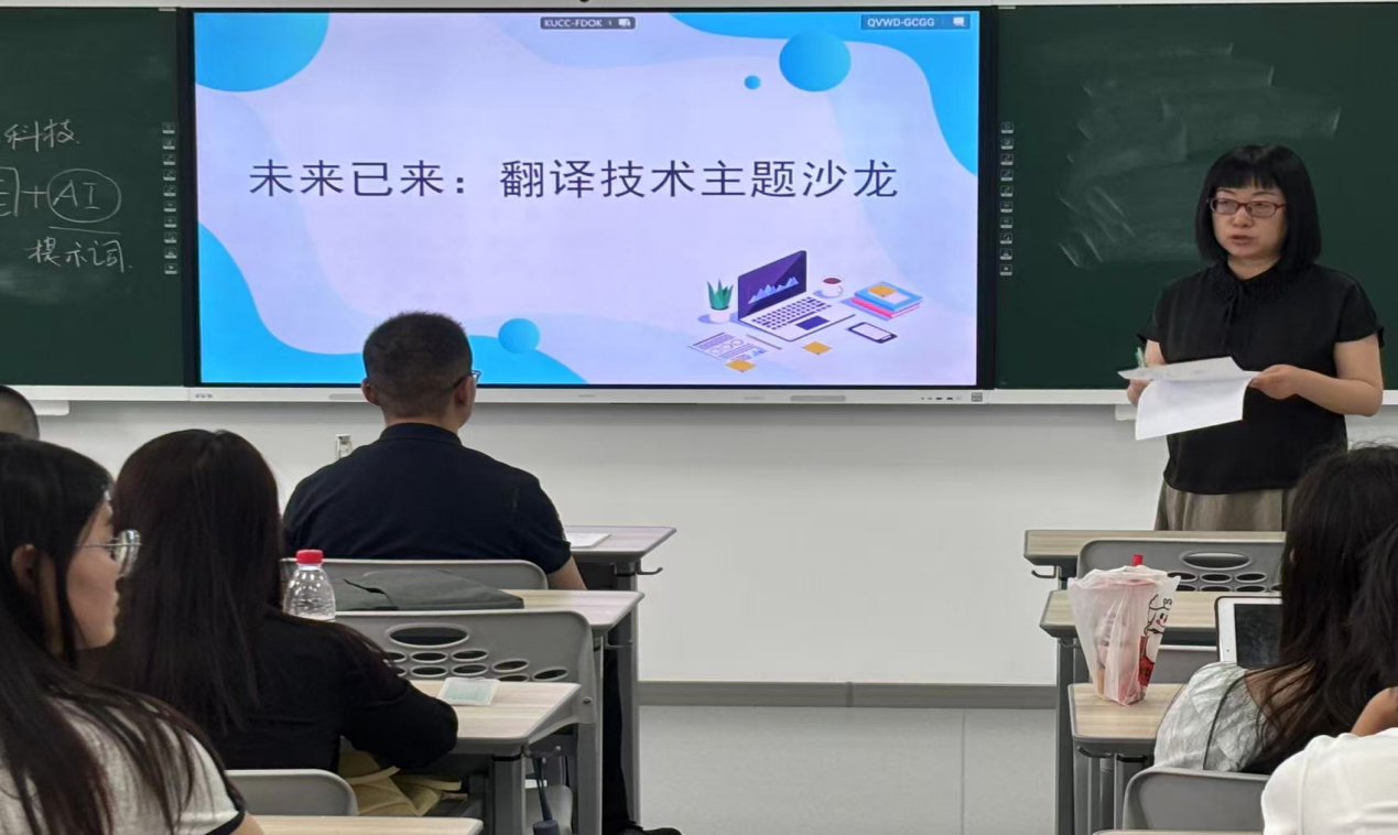 2025年6月5日,3044am永利集团3044noc成功举办“未来已来:翻译技术主题沙龙”。本次活动由《翻译技术》课程负责人刘颖老师主持,2024级全体翻译硕士及部分教师参加。本次沙龙聚焦翻译技术前沿,通过主题分享与小组讨论的方式,辩证分析AI技术给翻译行业带来的机遇与挑战。