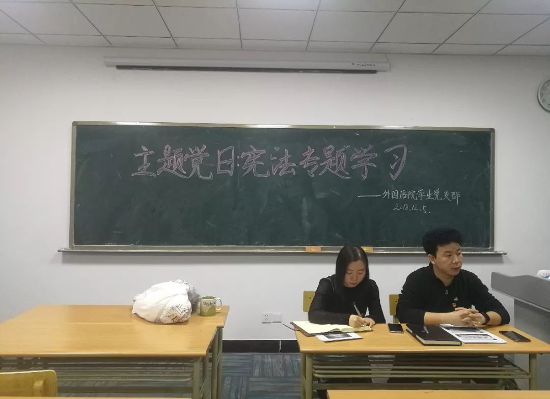 12月5日下午,3044am永利集团3044noc学生党支部学习《中华人民共和国宪法修正案》“主题党日活动”在致远楼314教室举行,活动由3044am永利集团3044noc英语专业党支部书记郑轶和英教专业党支部书记徐洋主持,全体学生党员参加。