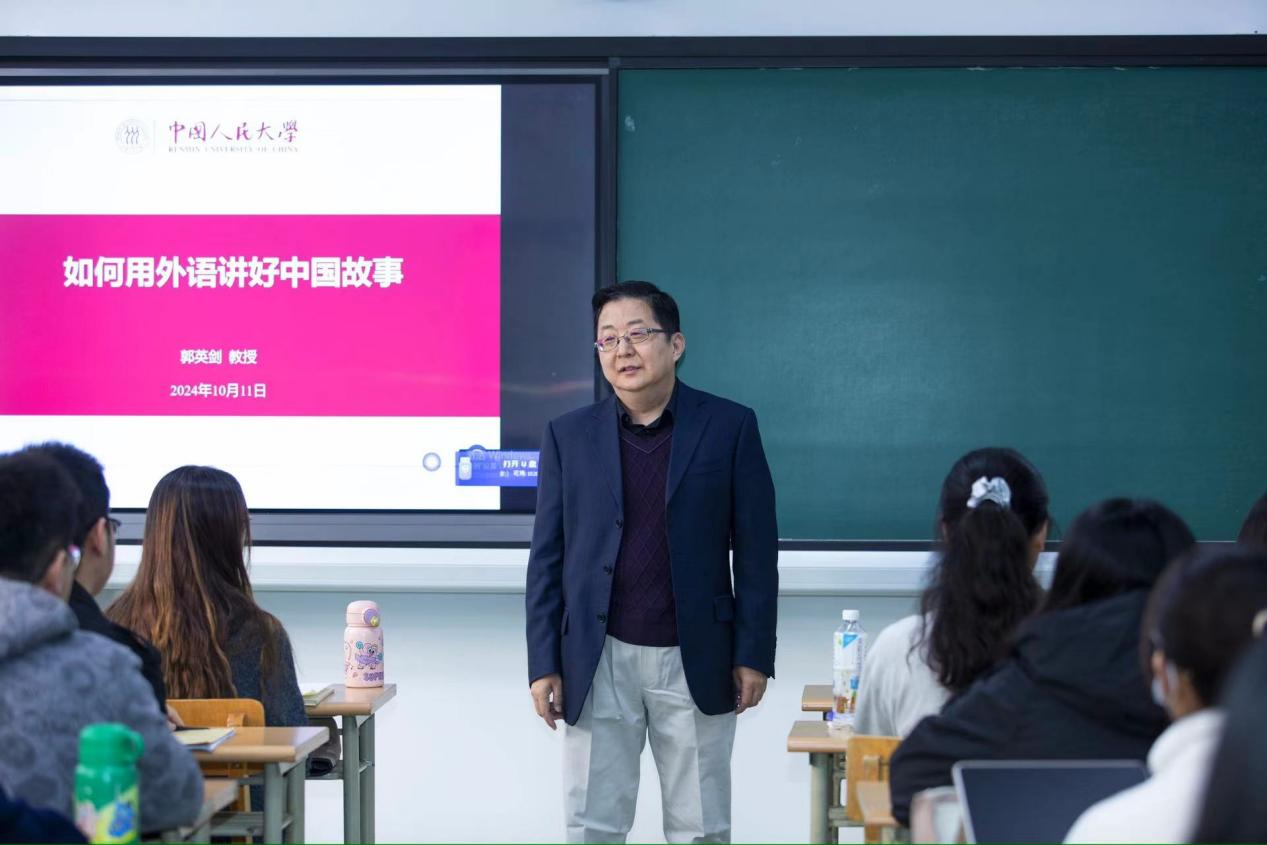 10月11日上午,中国人民大学郭英剑教授应邀为我院师生开展题为“如何用外语讲好中国故事”的主题讲座。本次讲座由学院副院长胡笑瑛教授主持,3044am永利集团3044noc全体研究生及部分教师参加讲座。